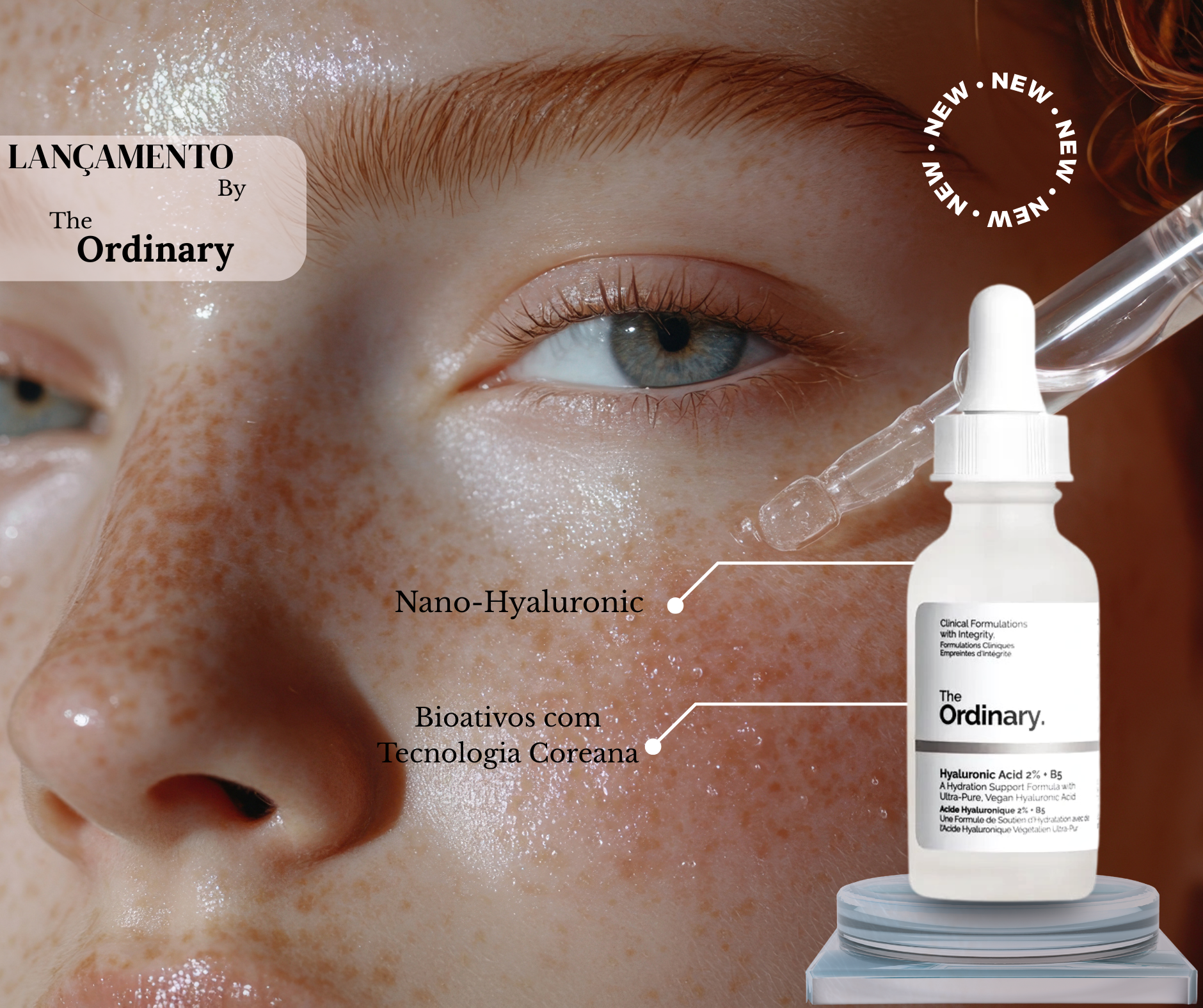 A The Ordinary apresenta o novo Sérum de Ácido Hialurônico 2% + Vitamina B5 que combina leveza e potência para uma hidratação profunda, sensorial e contínua. Sua fórmula de múltiplos pesos moleculares penetra em diferentes camadas da pele, suavizando linhas finas e fortalecendo a barreira natural. A textura é fluida, não oleosa, com absorção imediata. A pele responde com plenitude, maciez e um viço sutilmente luminoso.